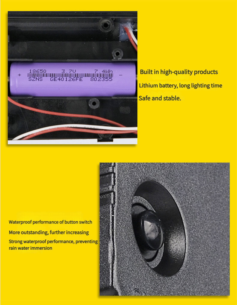| Model | Solar panel | Battery | Material | Light source | Charging time | Working time |